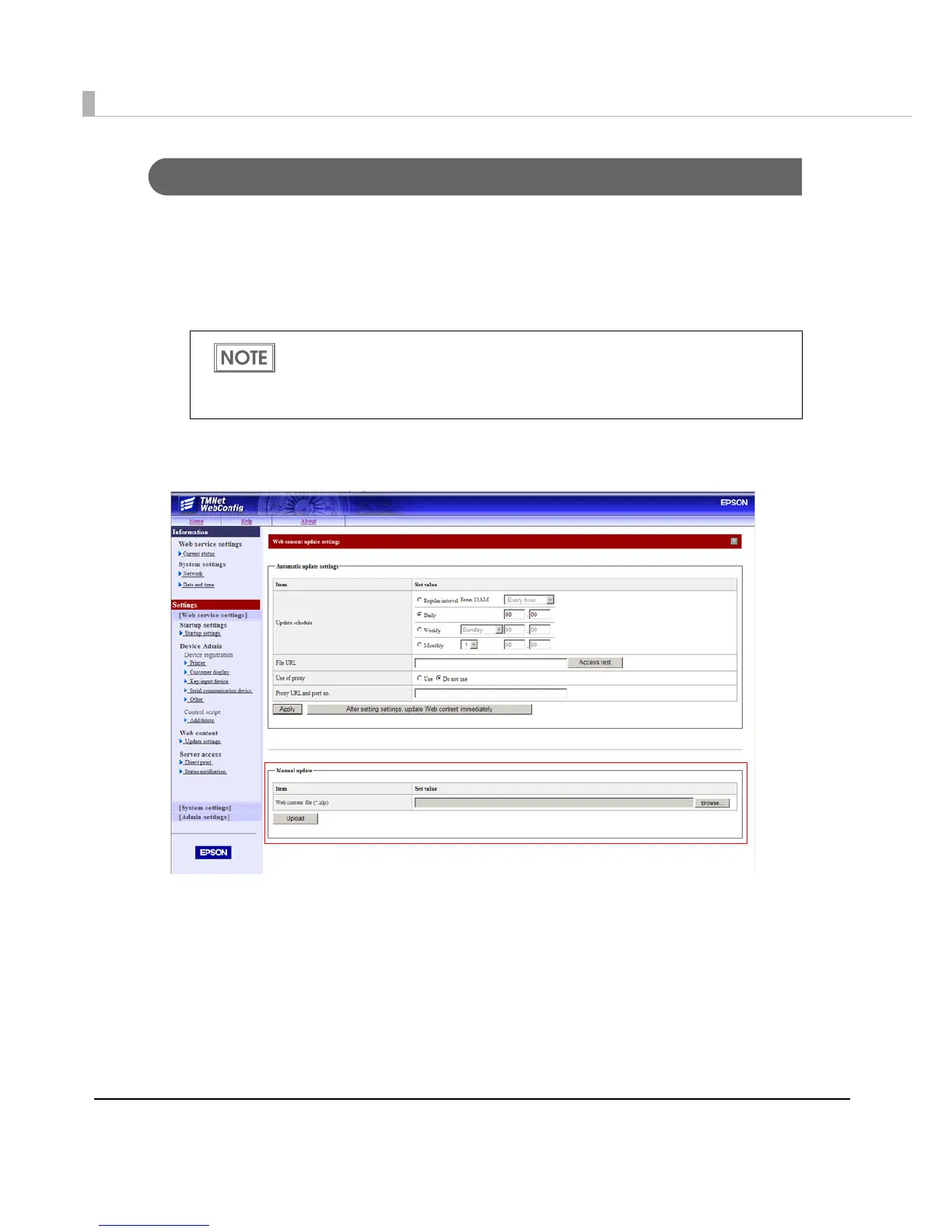 The "Web content update settings" screen is displayed.