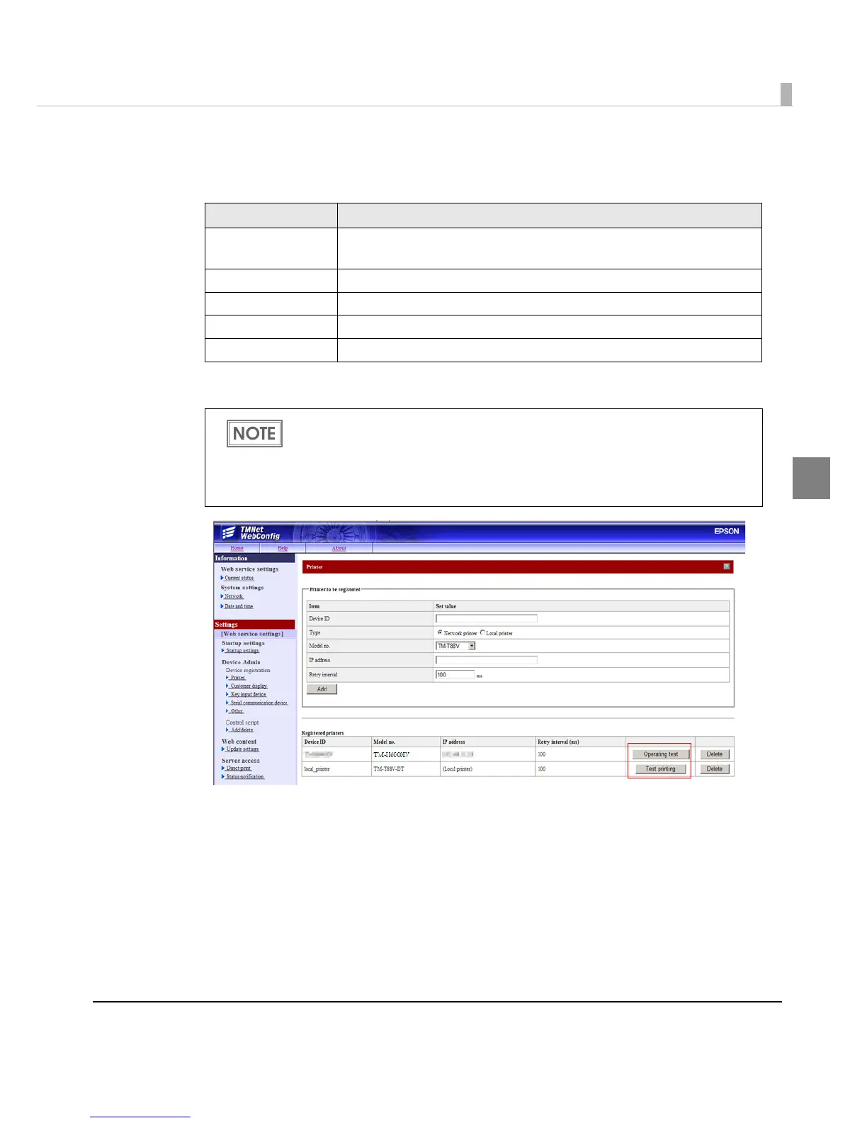 [Operating test] appears if the registered printer is TM-H6000IV, and [Test printing]
