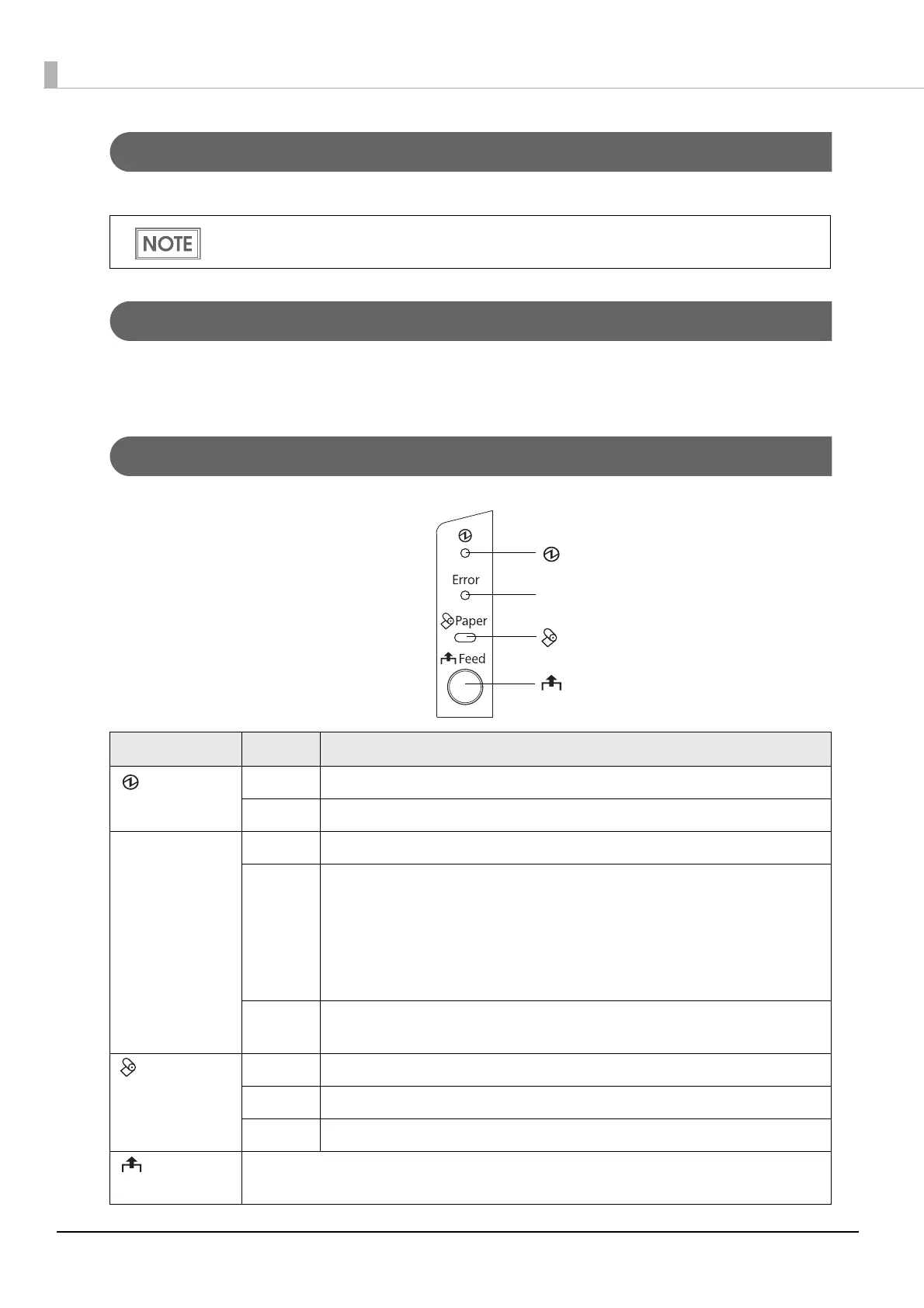 Feed button Pressing this button once feeds the roll paper by one line. Holding this button down