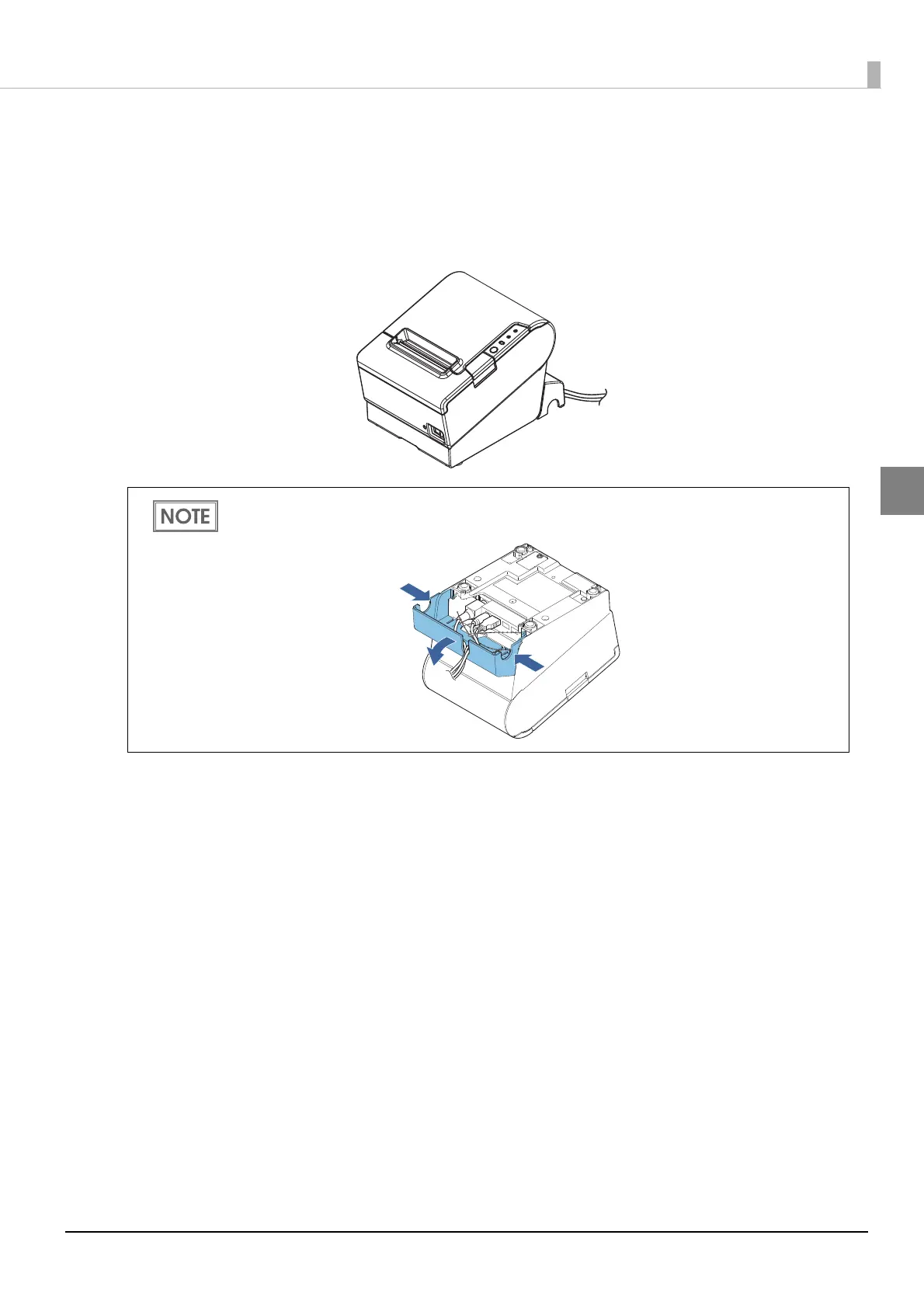pushing both sides of the connector cover inward to detach the hooks form the printer case.