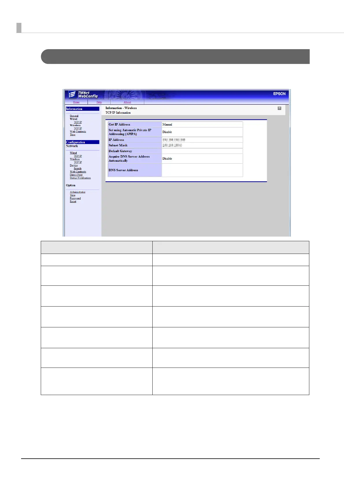You can check the TCP/IP setting for a wireless LAN when the optional wireless LAN cable set (OT-