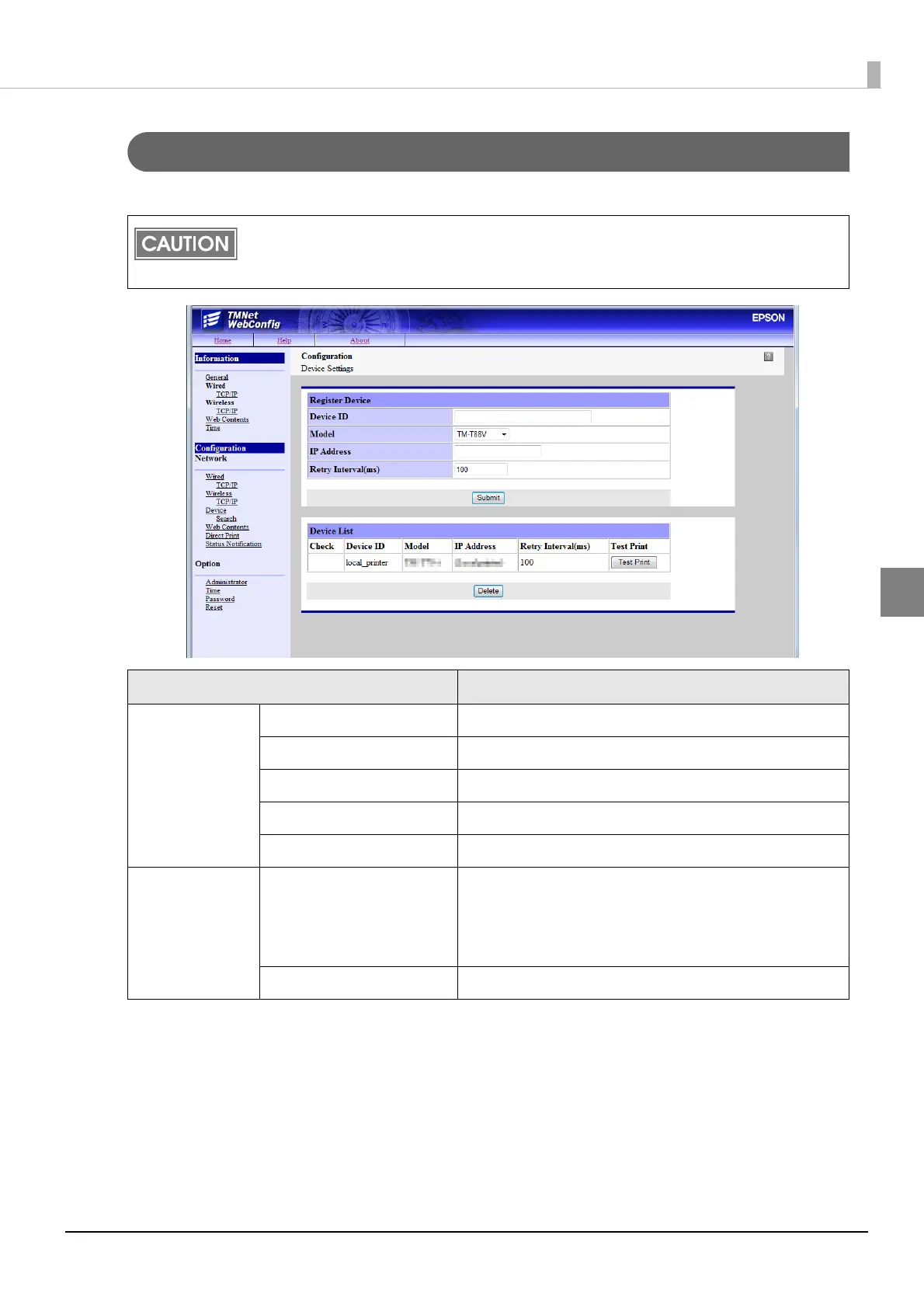 Device List Device Lists printers registered to the TM-T88V-i and their