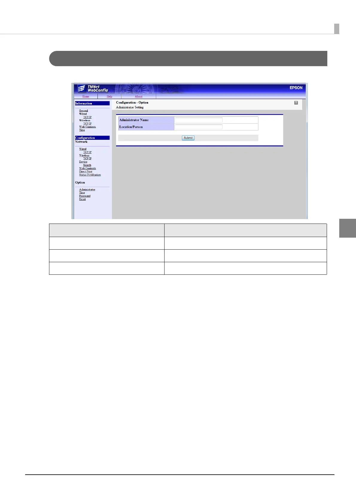 Administrator Name Sets the name of the administrator of the TM-T88V-i.