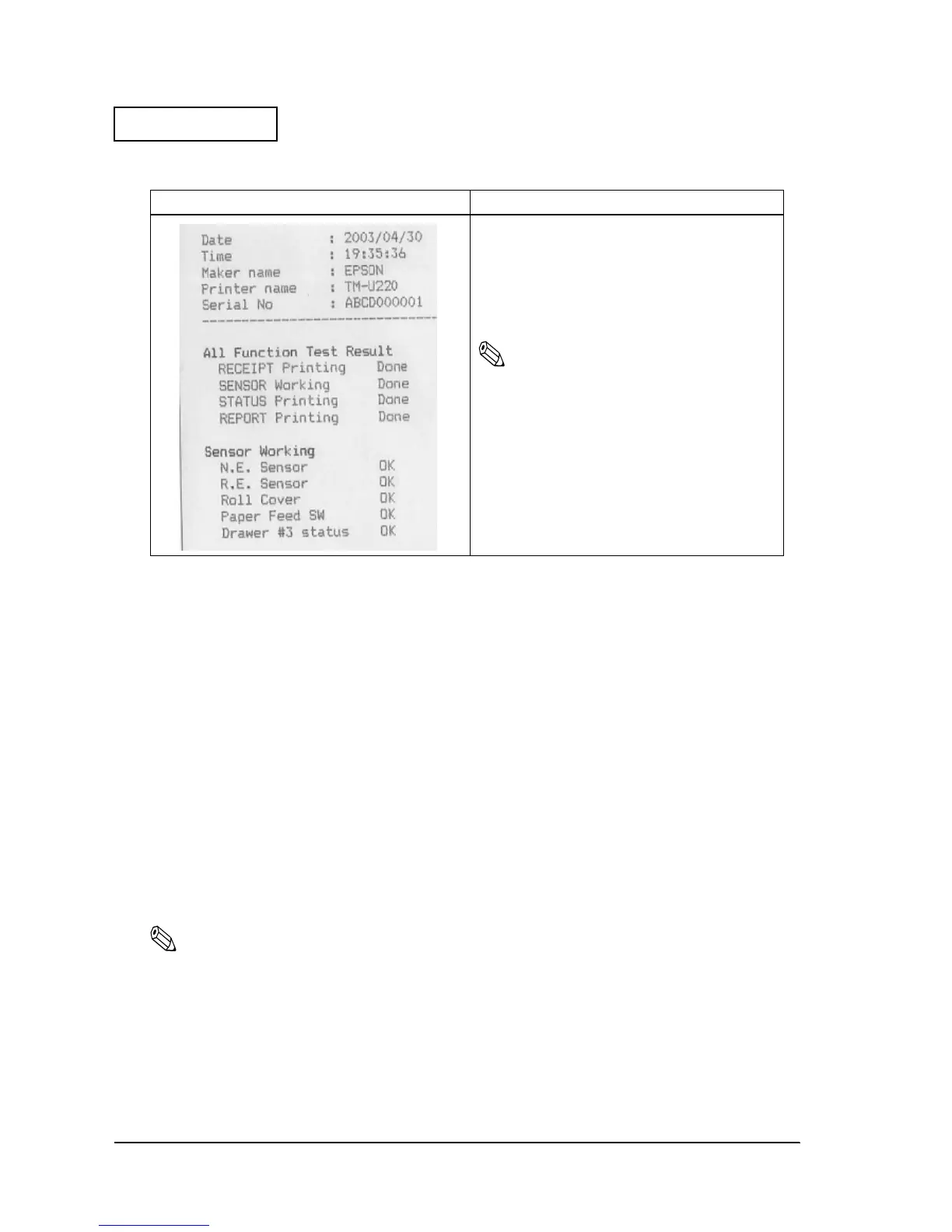 printer. The self-test prints the printer settings and then prints the following, cuts the paper,