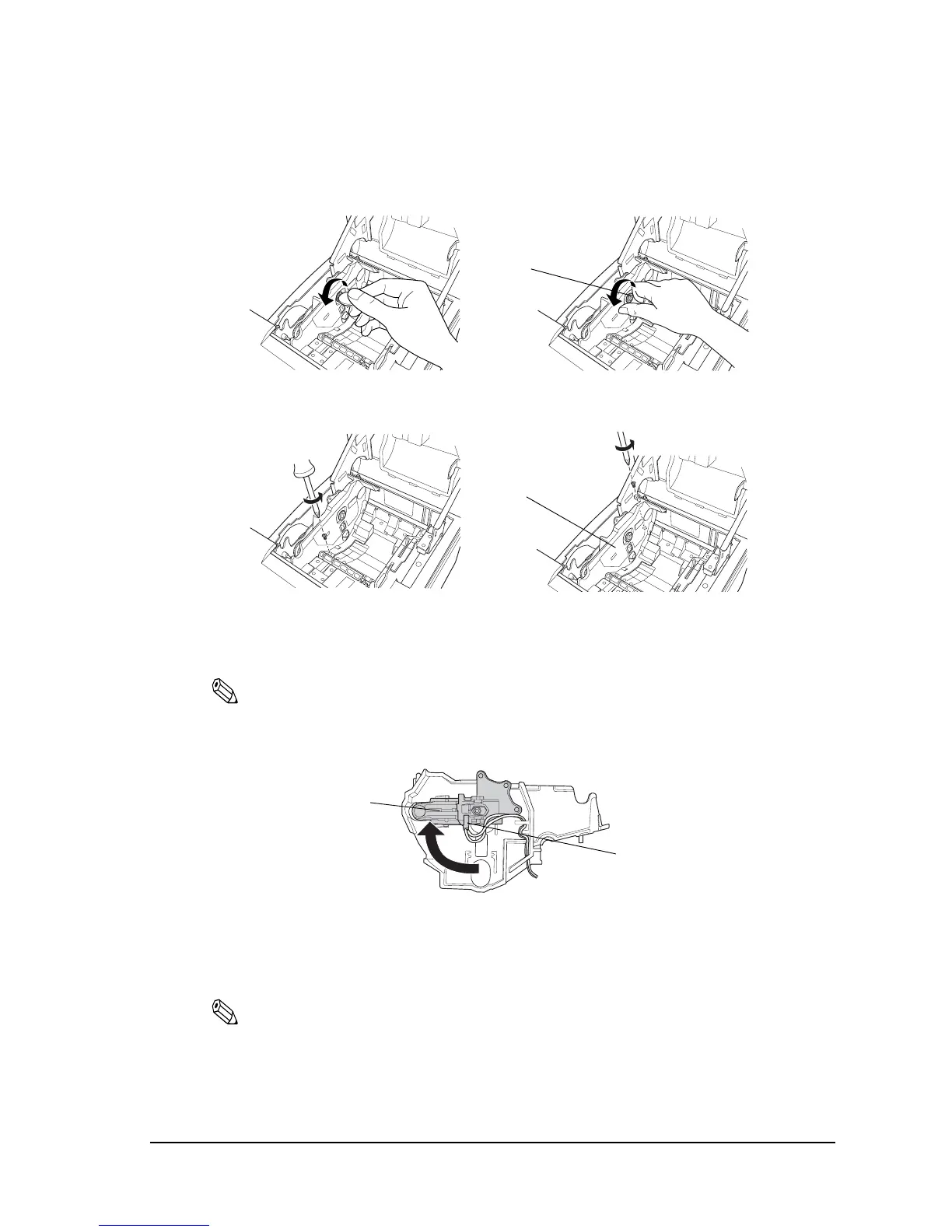 You will not use one of the two screws that have been removed when the roll paper guide is removed.