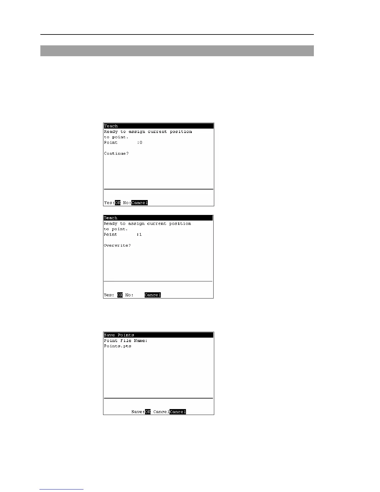 When the point number is already used, the following screen appears.