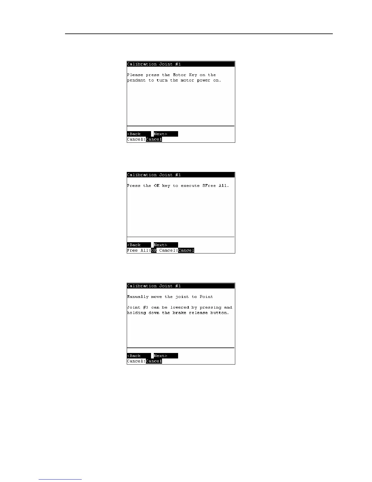 The following screen appears. Manually move and position the joint that needs
