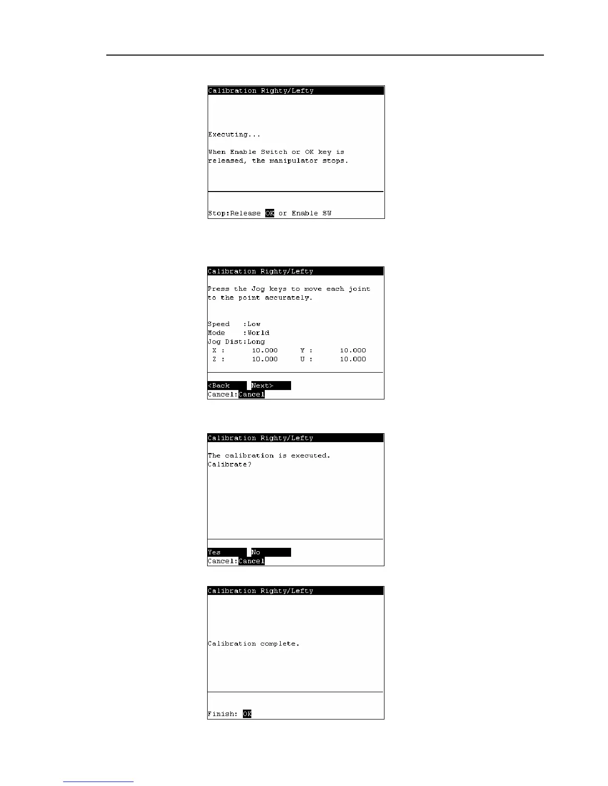 The origin calibration completed screen appears.