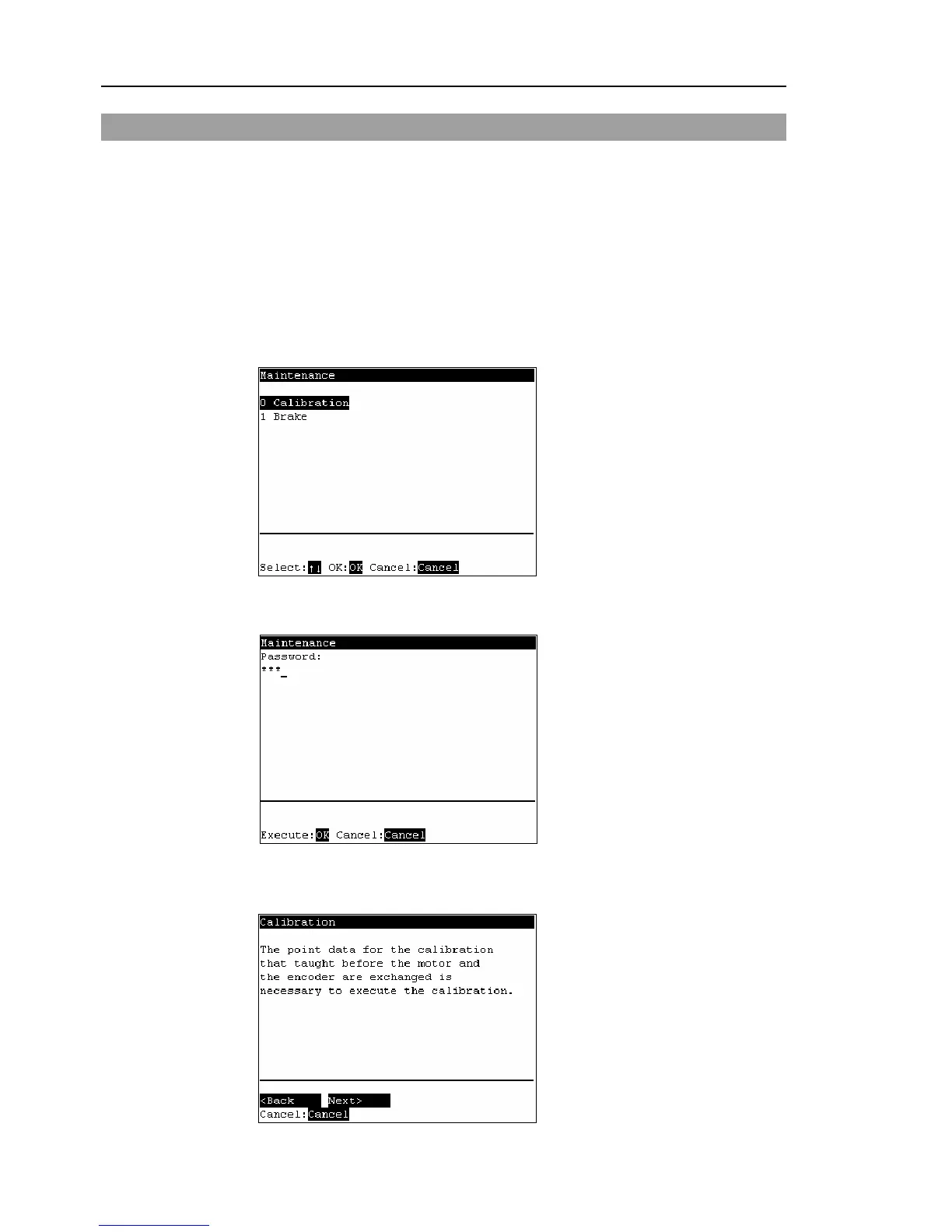 The same calibration procedure is used for all joints. Follow the steps below to calibrate