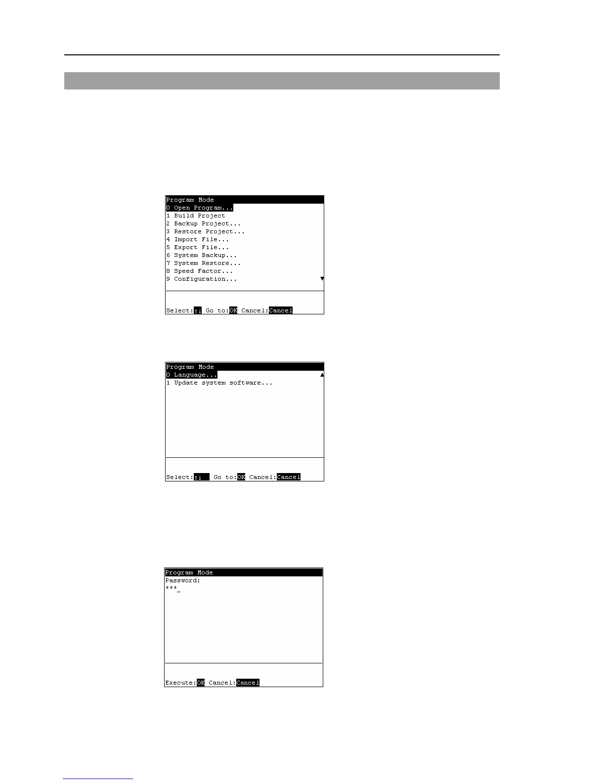 In the [Main Menu] screen, move the cursor to [5 Program Mode...], and press the