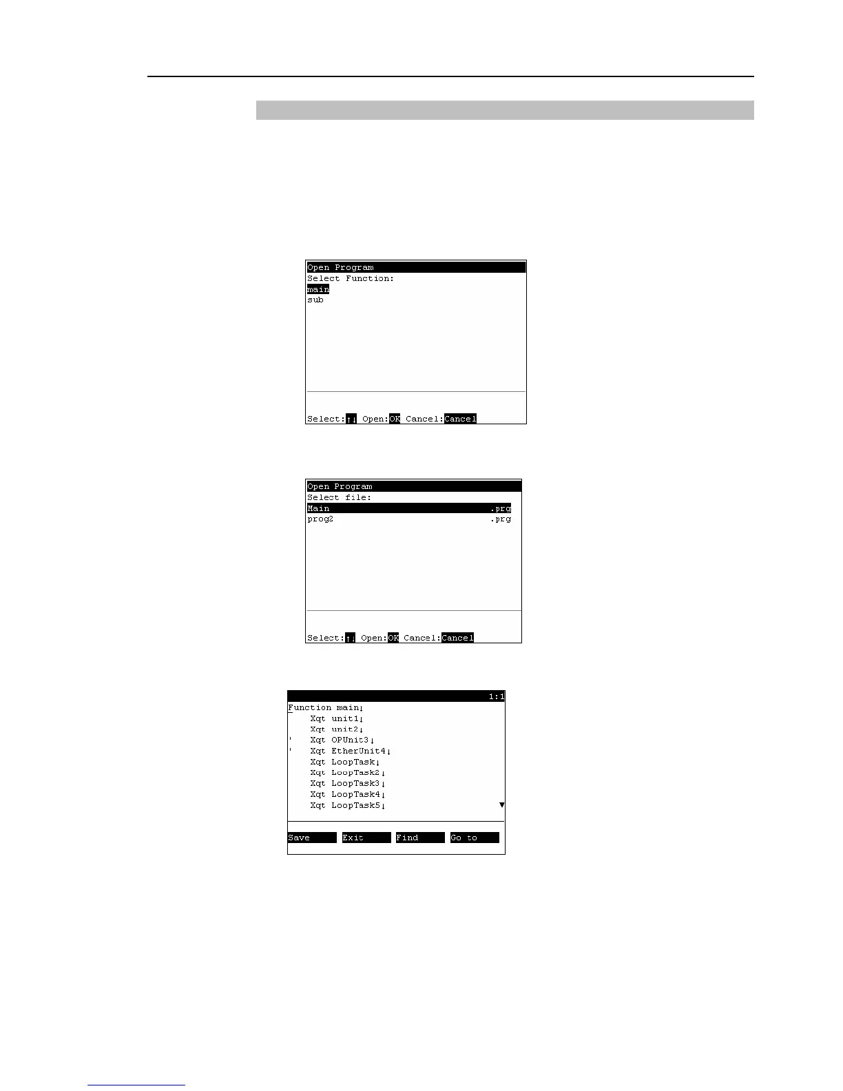 In the [Program Mode] screen, move the cursor to [0 Open Program...], and press the