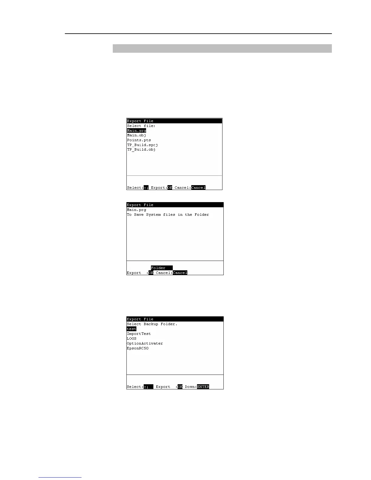 In the [Program Mode] screen, move the cursor to [5 Export File...], and press the