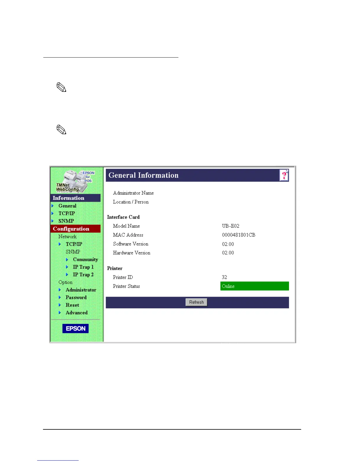 Launch a browser and input the IP address of the UB-E02. Be sure not to launch the EPSON TMNet
