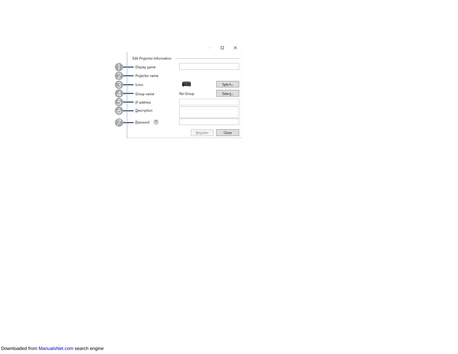 4 Select a group if you want to register the projector to a group.