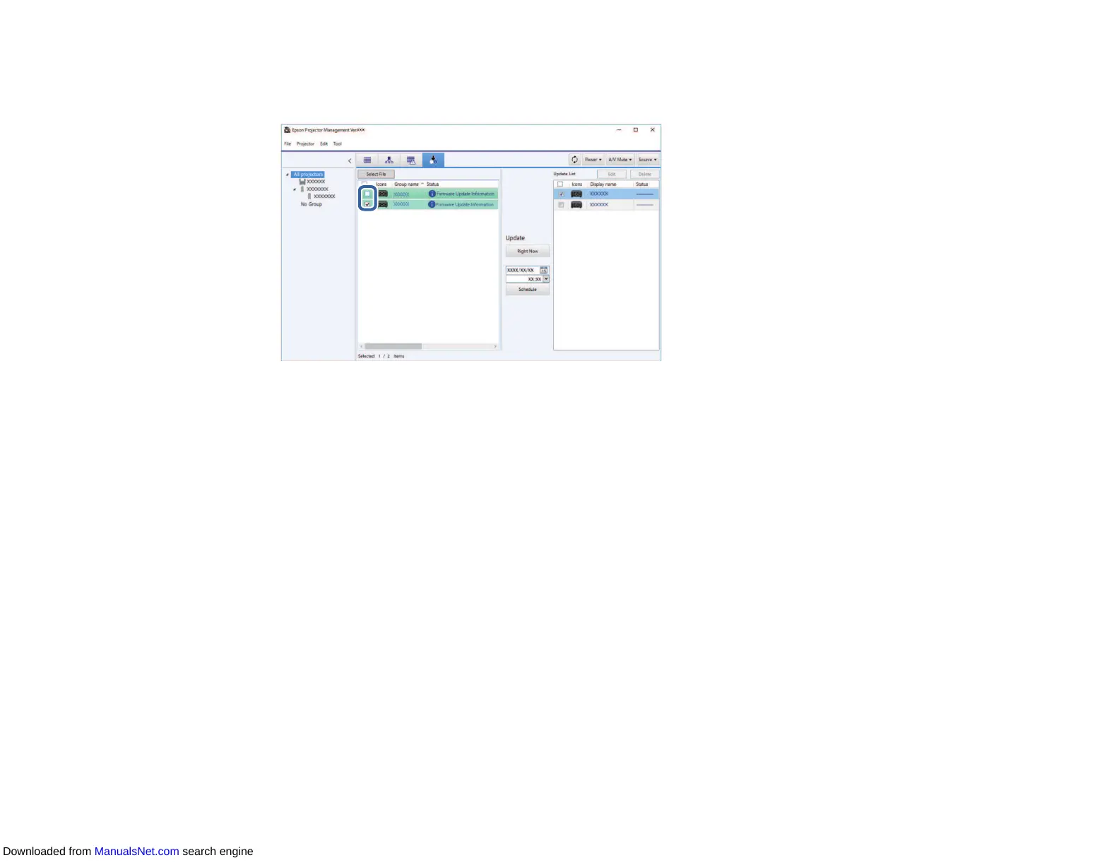 2. Select the projector you want to update. You can select multiple projectors or all projectors by