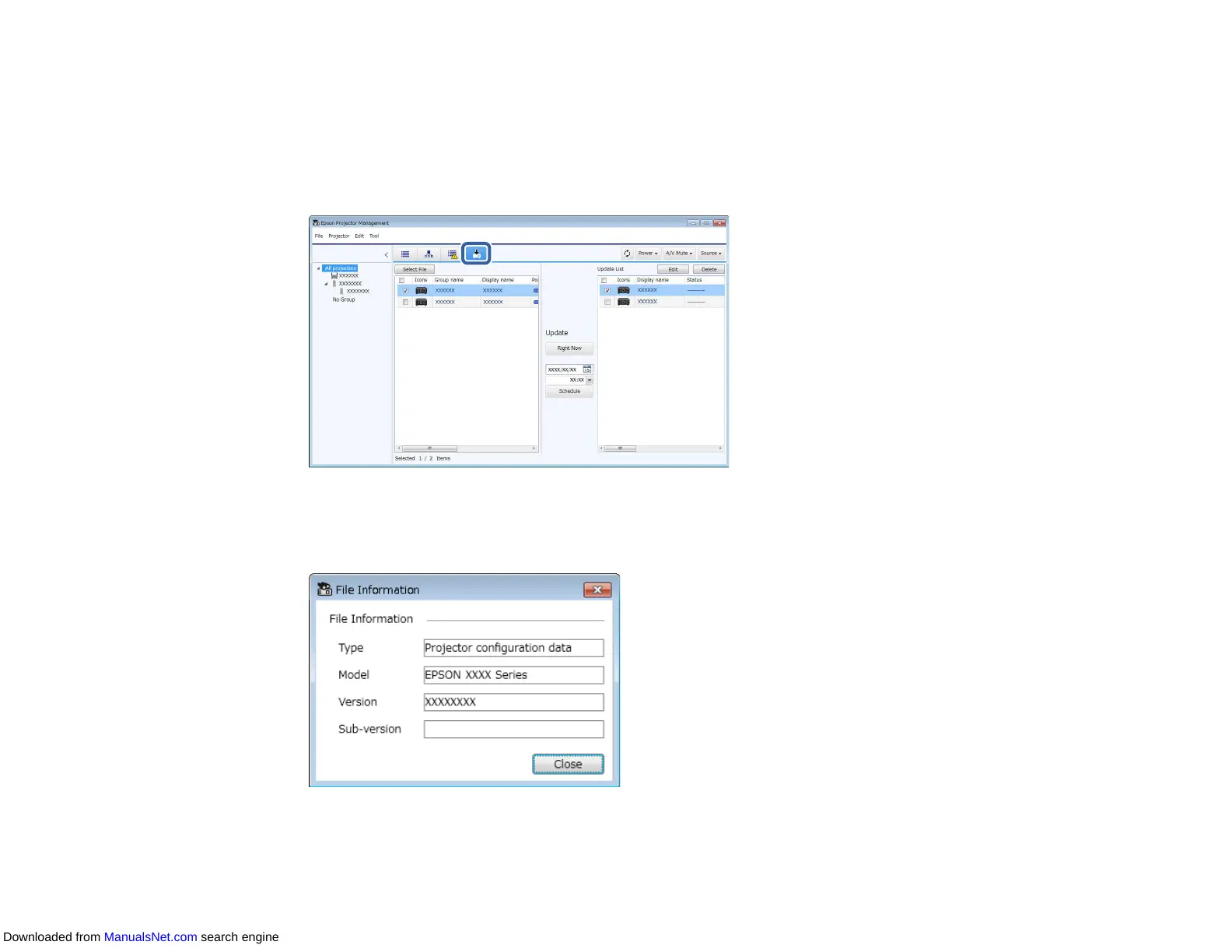 1. Click the Update List icon on the Epson Projector Management main screen to open the Update