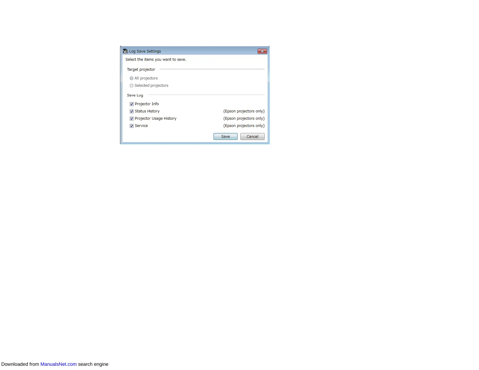 • Select Selected projectors to include only the selected projectors.