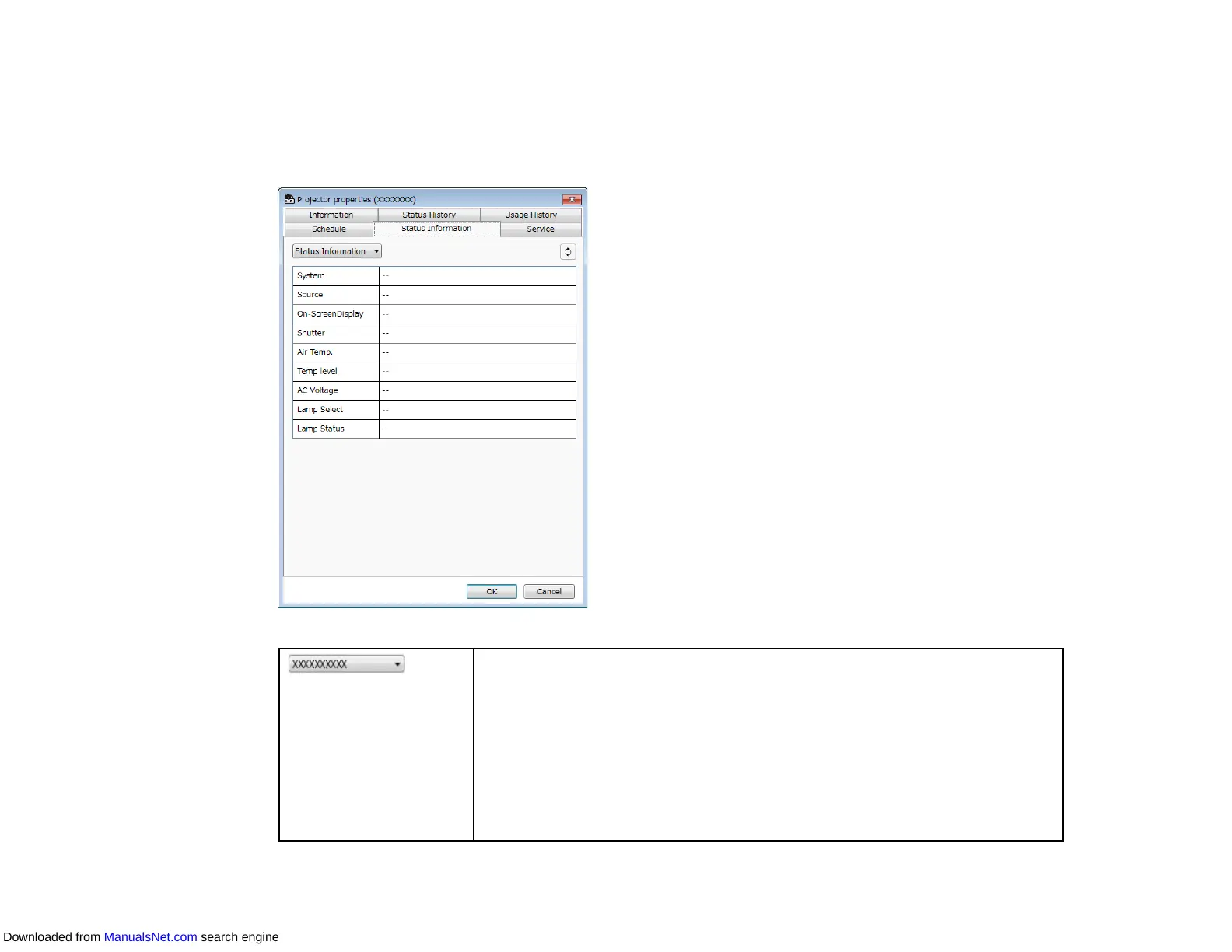 appears. The information acquired from the projector varies depending on the projector model. If the