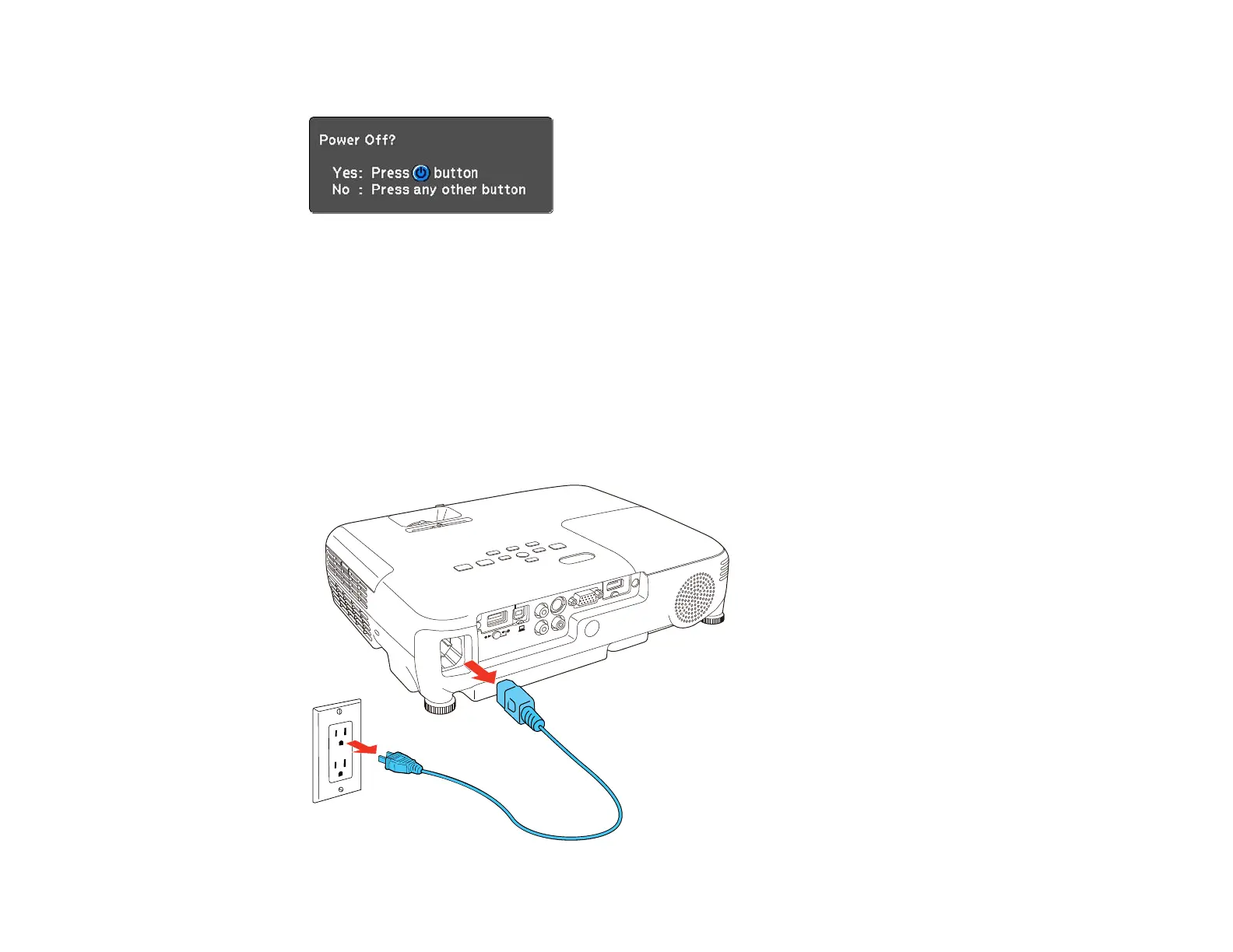 Caution: Do not turn the projector on immediately after turning it off. Turning the projector on and off