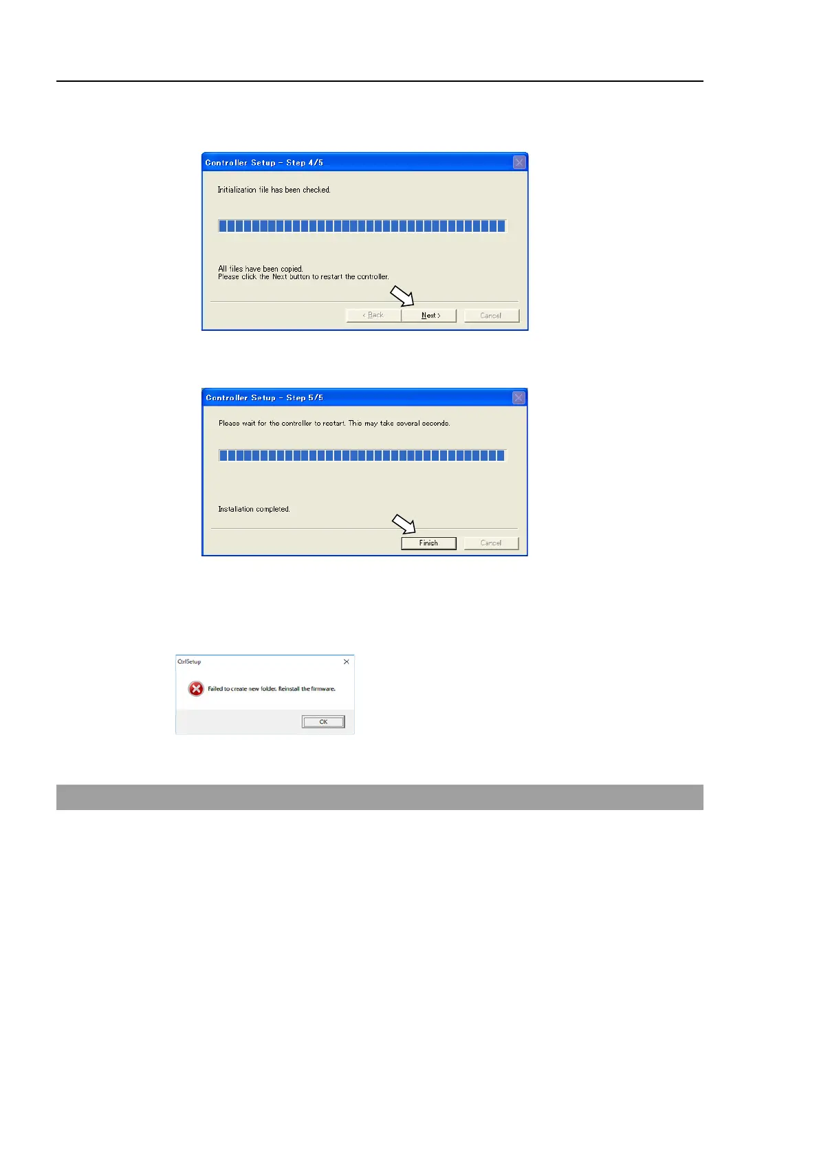 (11) The following dialog box appears after the Controller reboot. Click the <Finish>