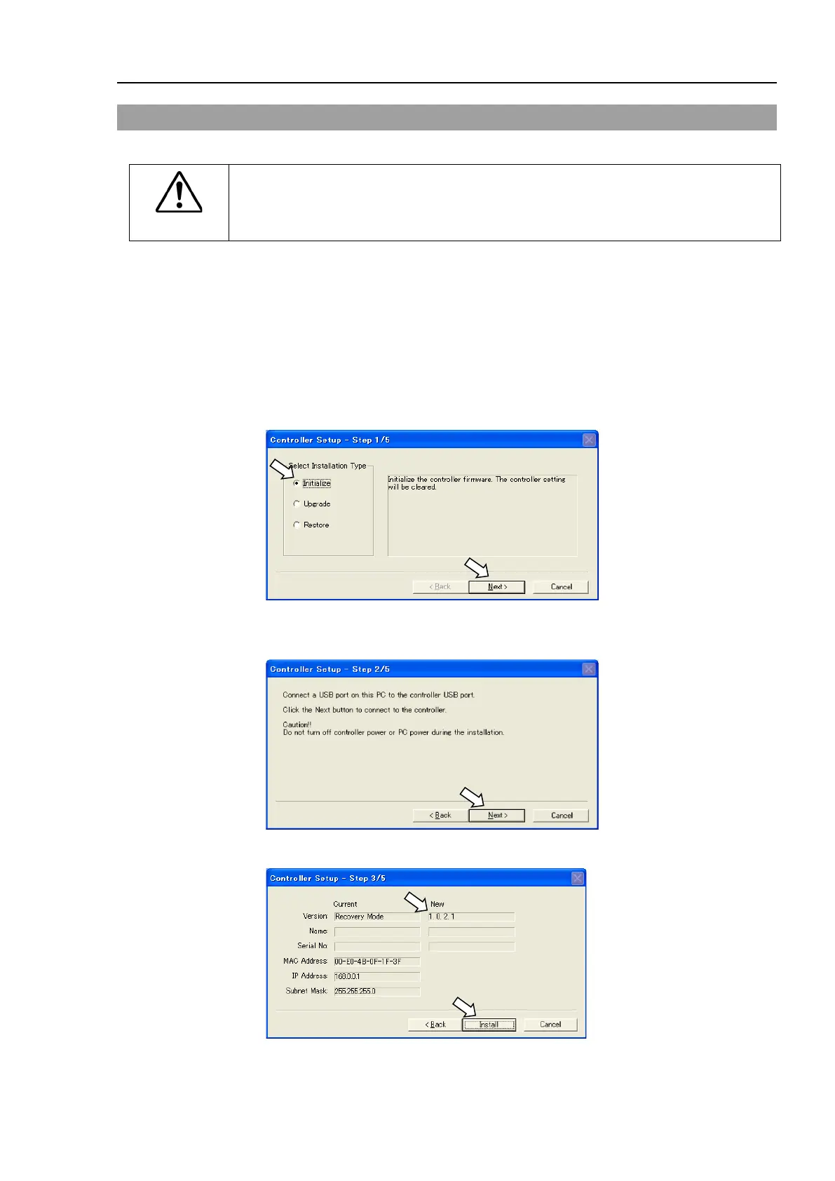 (1) Connect the development PC to the Manipulator with a USB cable (the firmware cannot