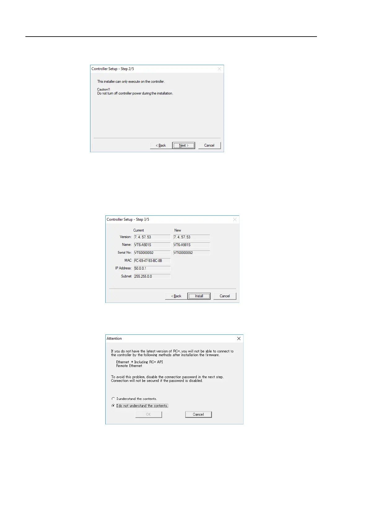 (5)-2 When the steps to confirm whether to continue the firmware update is executed: