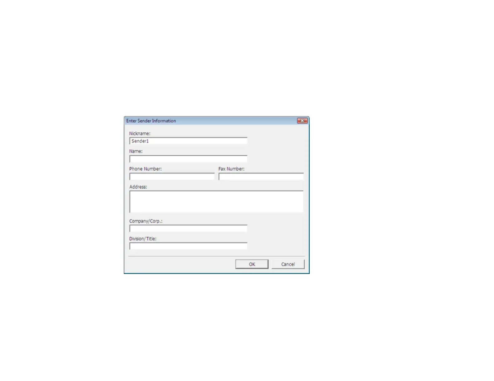 6. Enter your sender information so that recipients can identify the origin of the fax. Then click OK to