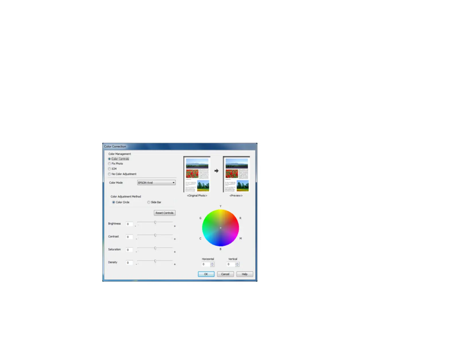 You can select any of the available options in the Color Correction window to customize the image colors