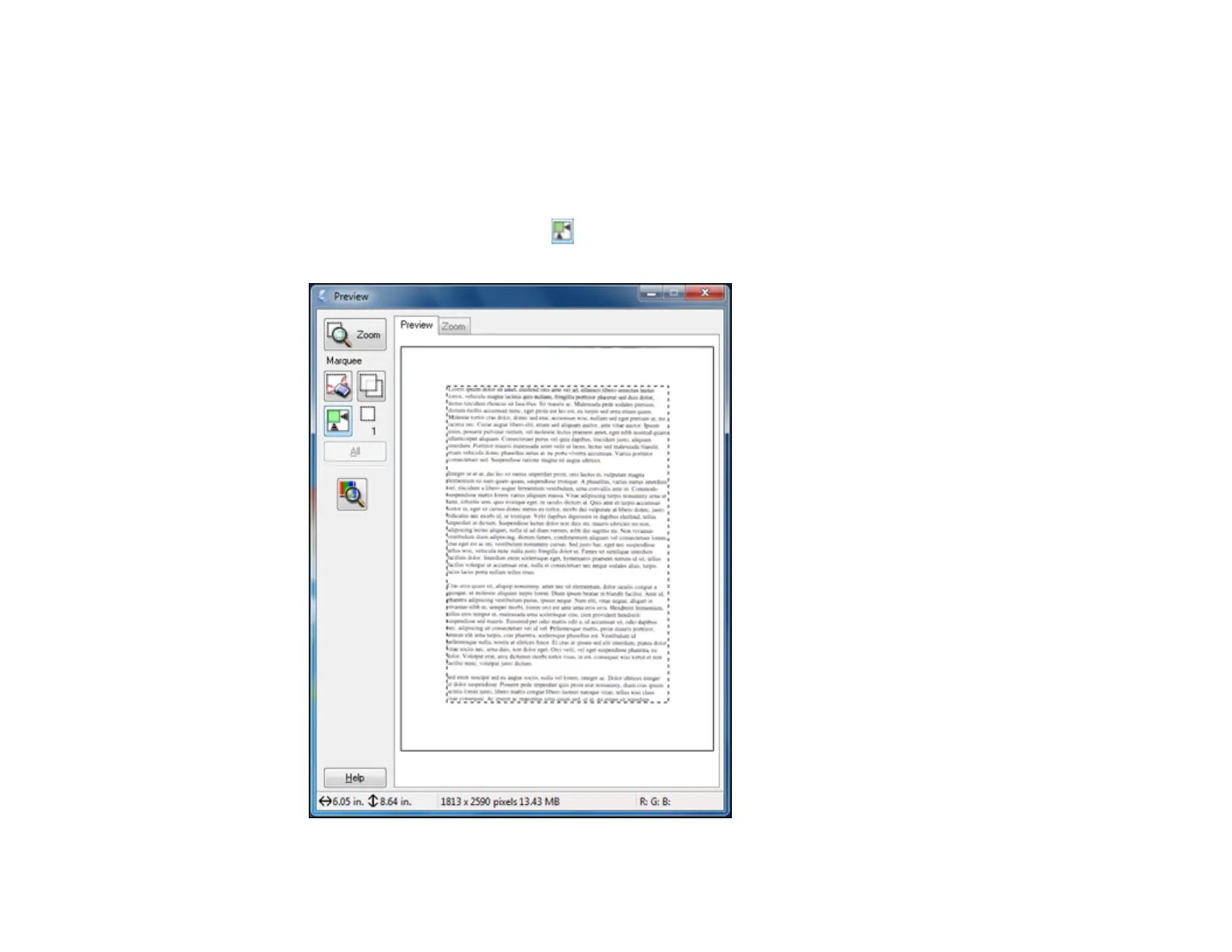 1. In the Preview window, click the Auto Locate icon to create a marquee (dotted line) on the