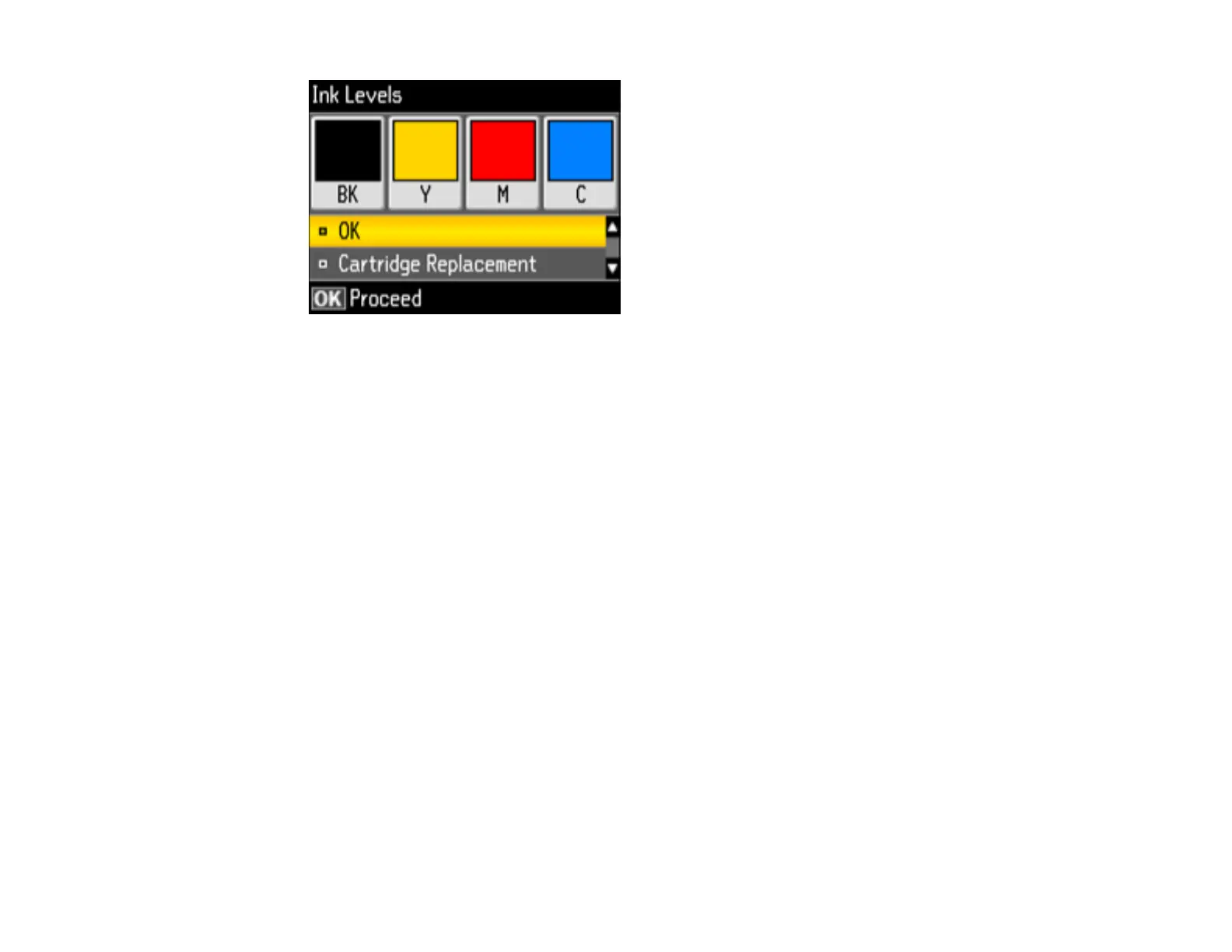 • If you want to replace an ink cartridge now, select Cartridge Replacement and press the OK
