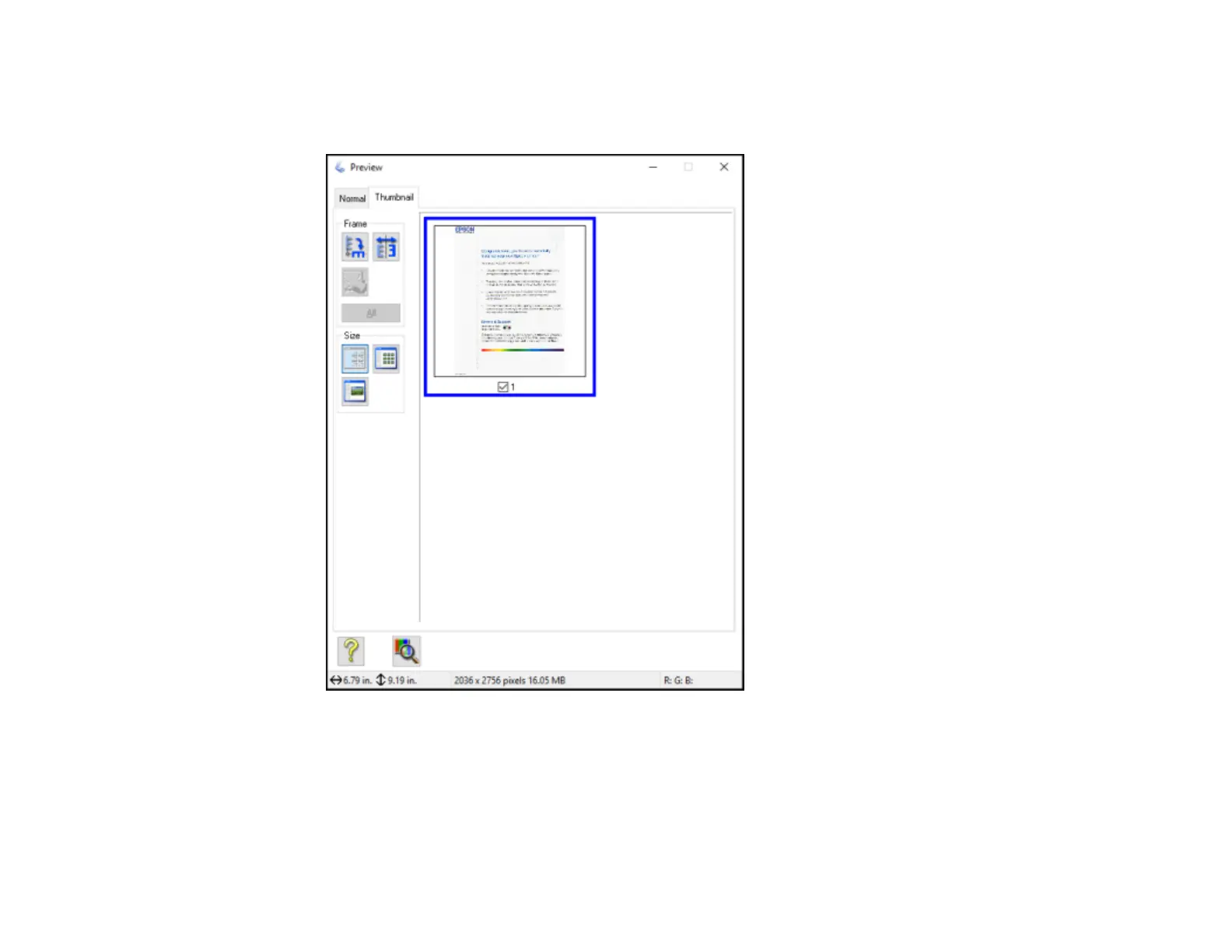 • Thumbnail preview: Your scan area is selected automatically, but you can change it. Place your