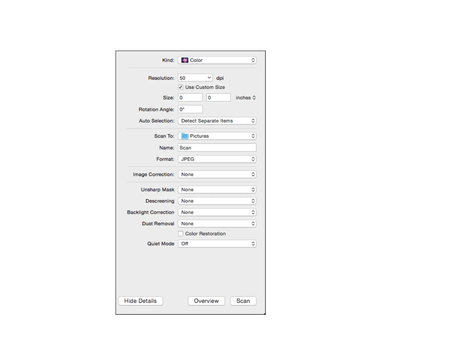 other available scan settings as necessary.