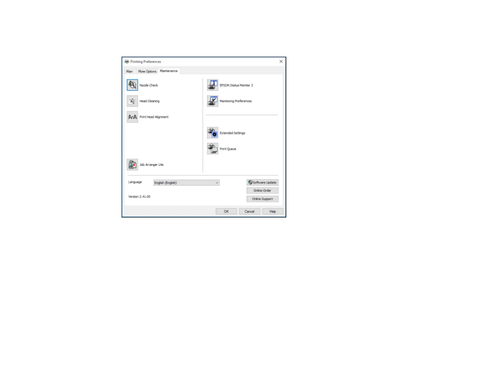 The printer software screens appear in the language you selected the next time you access them.