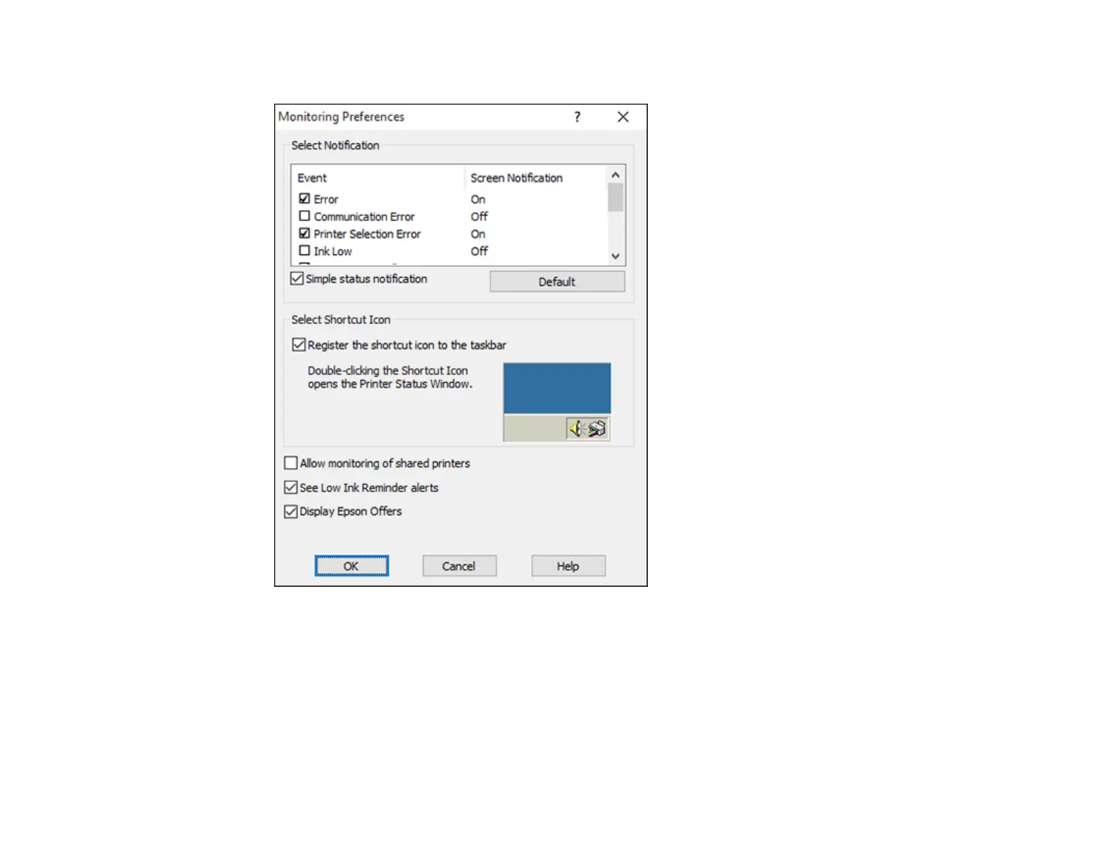 4. Deselect the See Low Ink Reminder alerts checkbox at the bottom of the screen.
