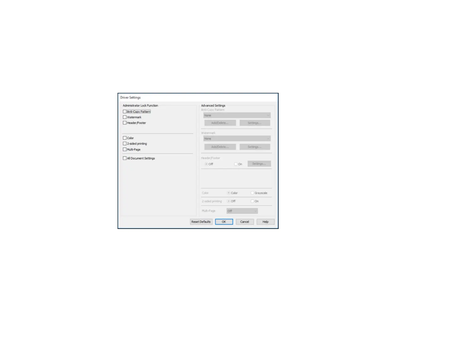 4. Select the checkbox for each setting you want to lock. To lock all print settings, select All Document
