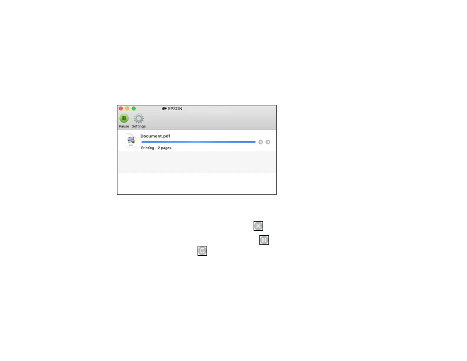 To pause a print job, click the print job and click or Hold. To resume a print job, click the
