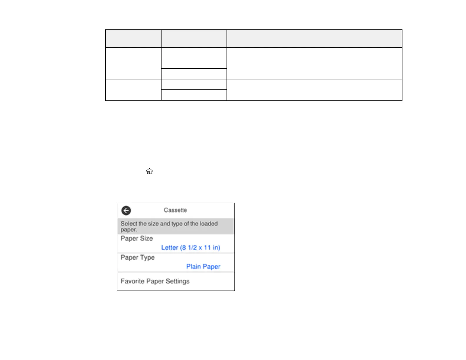 Selecting the Paper Settings - Control Panel