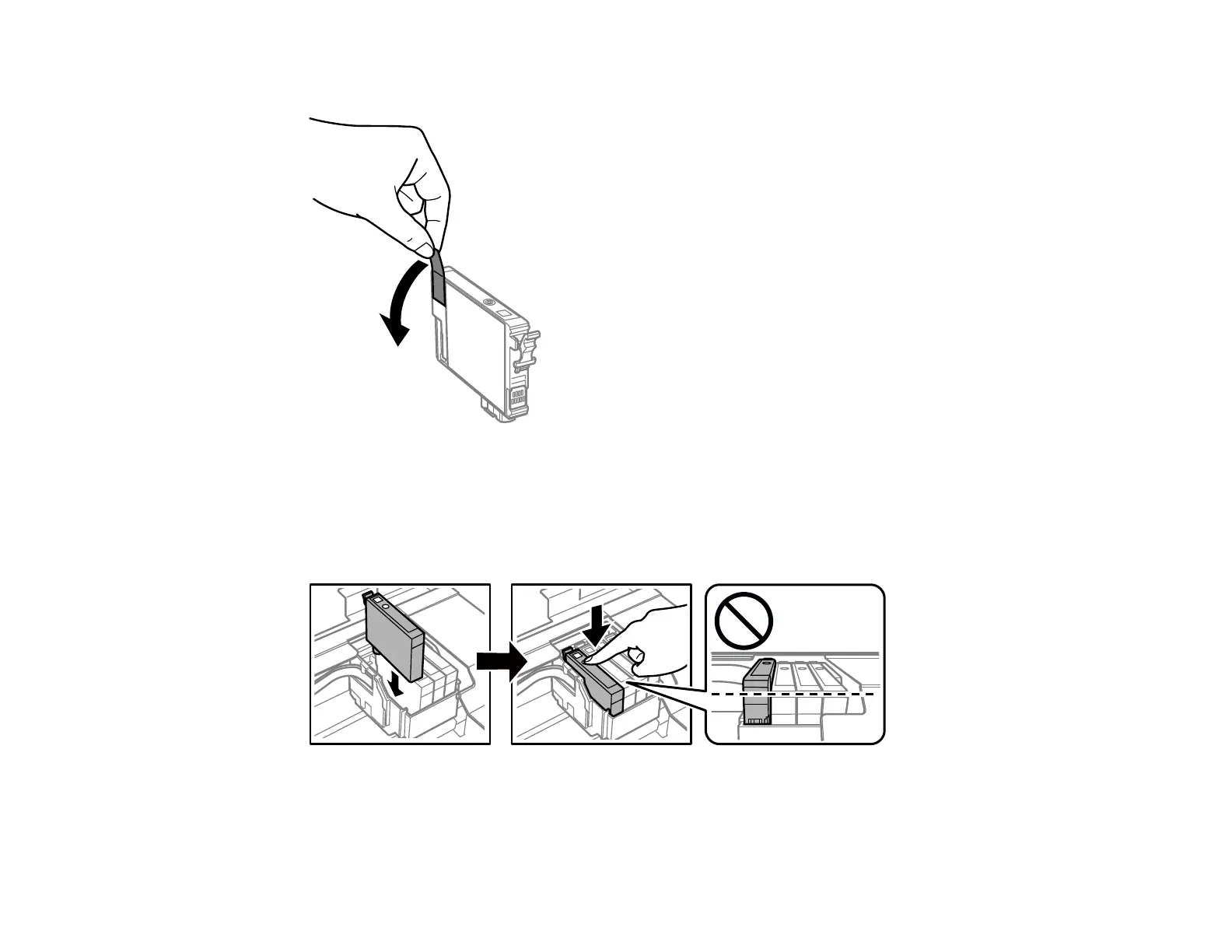 Caution: Do not remove any other labels or seals, or the ink cartridge may leak or become