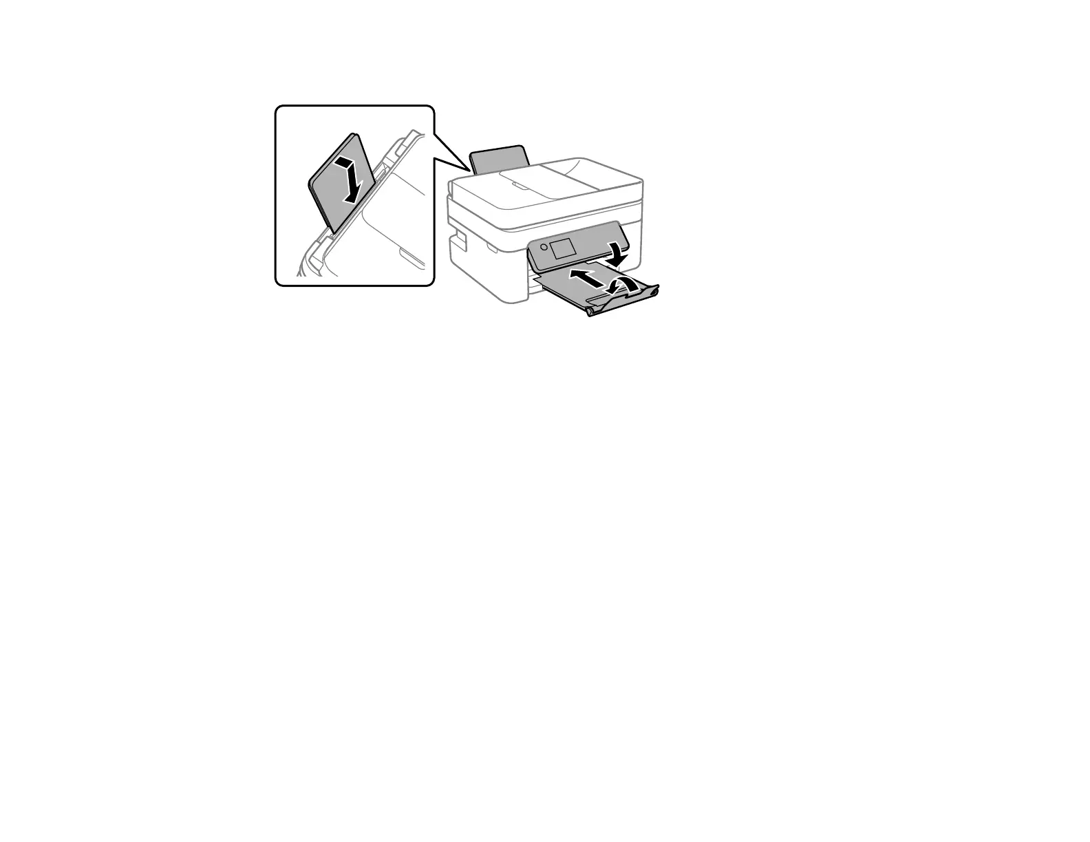 8. Close the output tray and paper support, lower the control panel, and close the rear feed.
