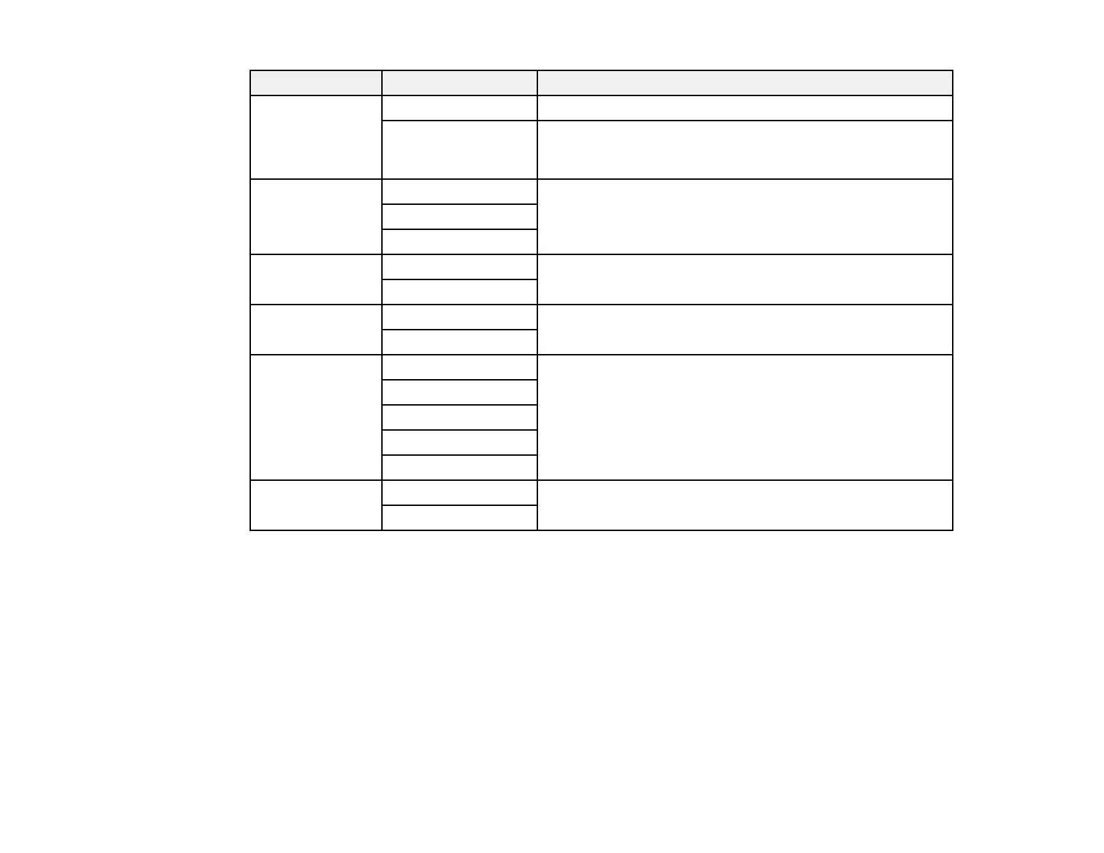 Copying option Available settings Description