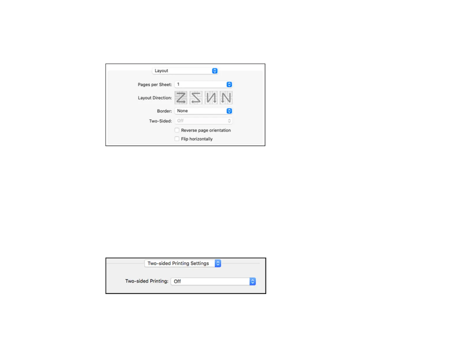 • To print on both sides of each page, select a setting from the Two-Sided pop-up menu.