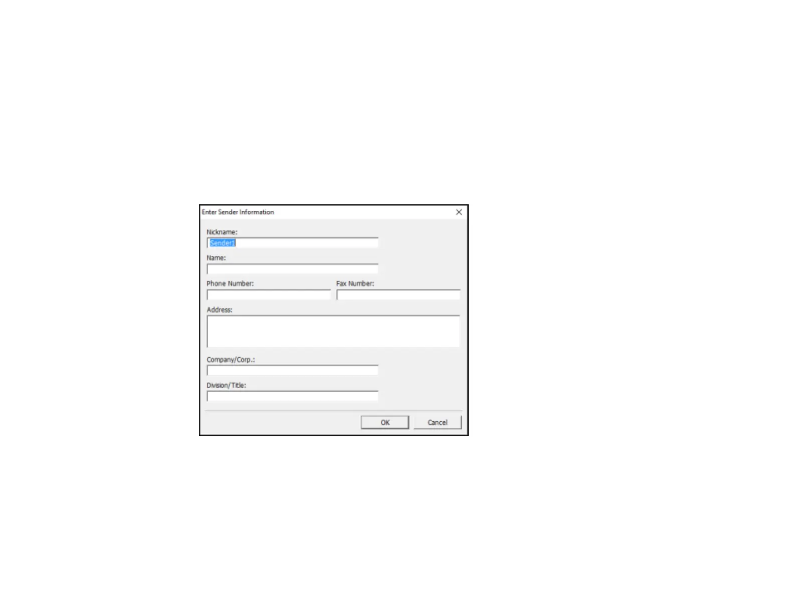 6. Enter your sender information so that recipients can identify the origin of the fax. Then click OK to