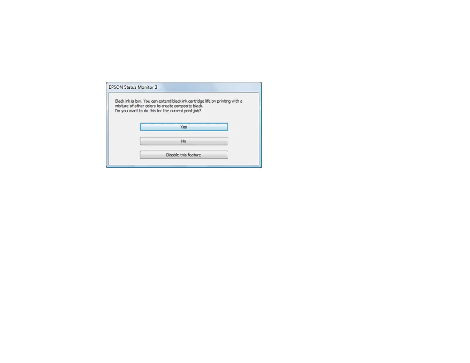 • Click Yes to use a mixture of color inks to create black, or No to continue using the remaining black ink
