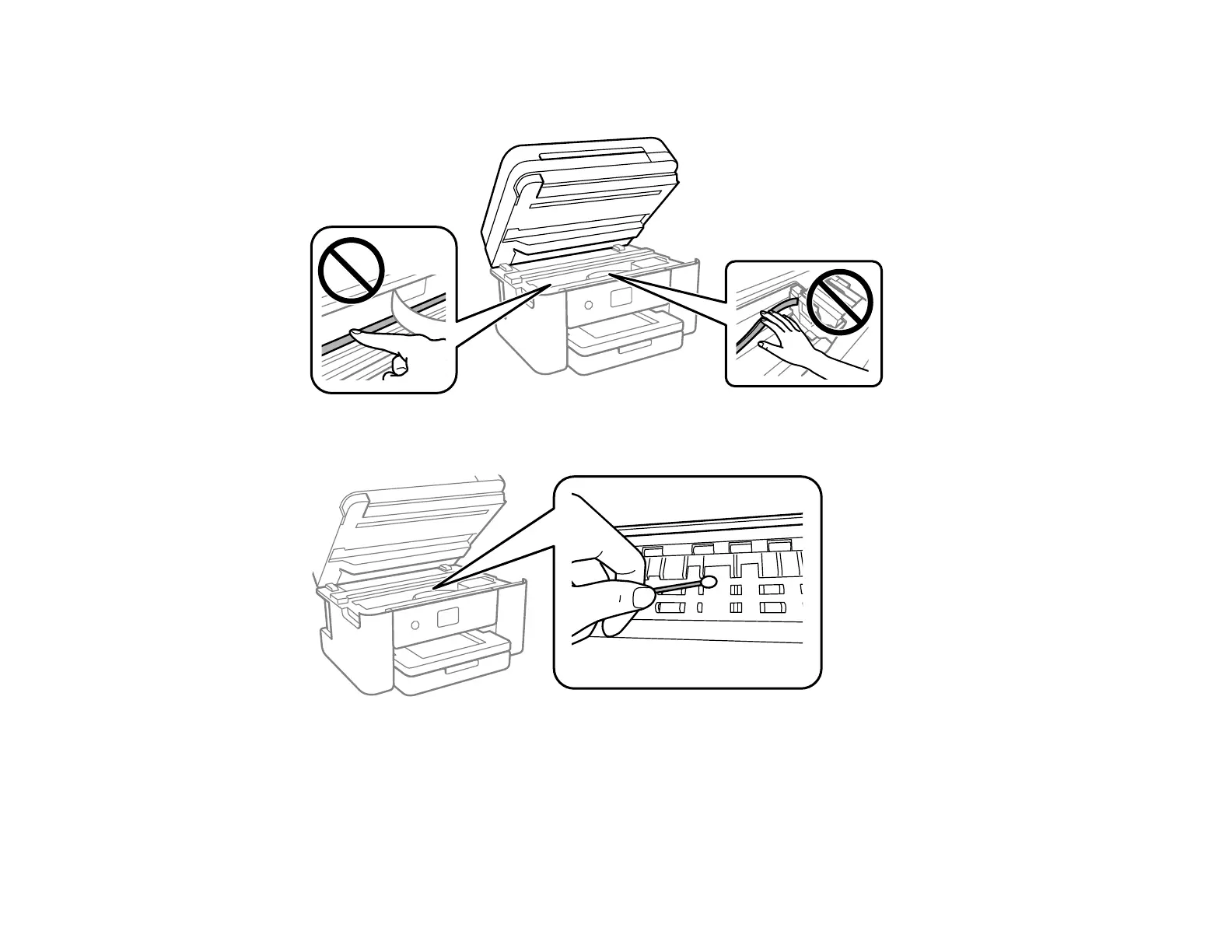 Caution: Do not use tissue paper to clean the inside of the product as lint can clog the print head