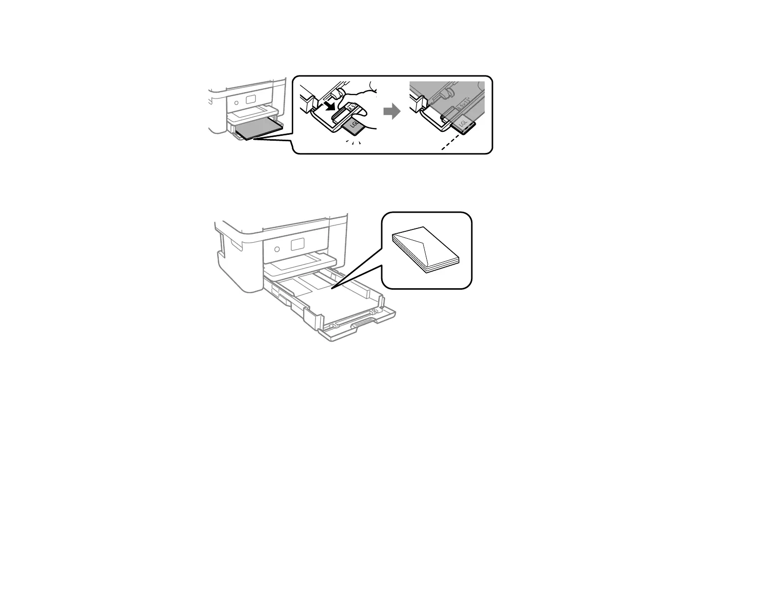 Load up to 10 envelopes with the printable side down and flap facing right, as shown.