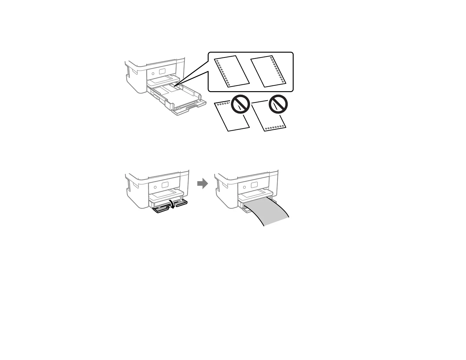 Load a single sheet of loose-leaf or other paper with holes facing as shown. Load paper printable