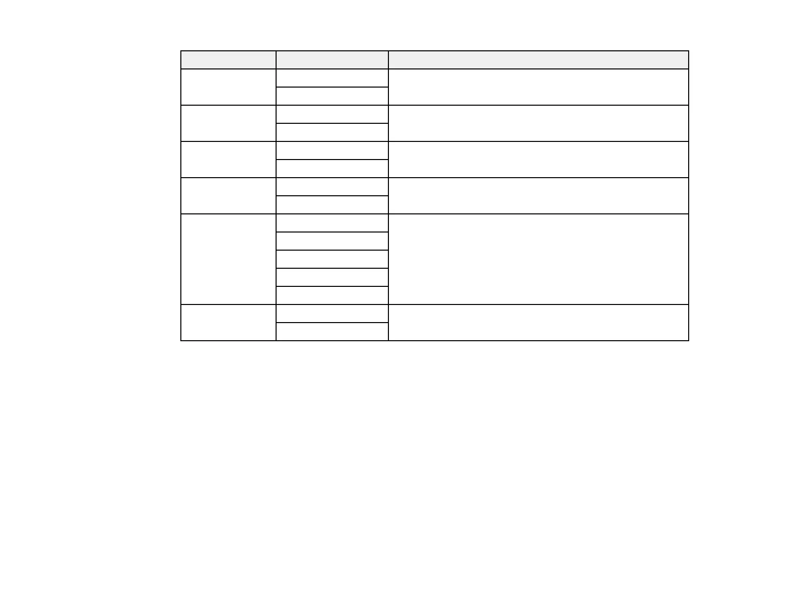 Copying option Available settings Description