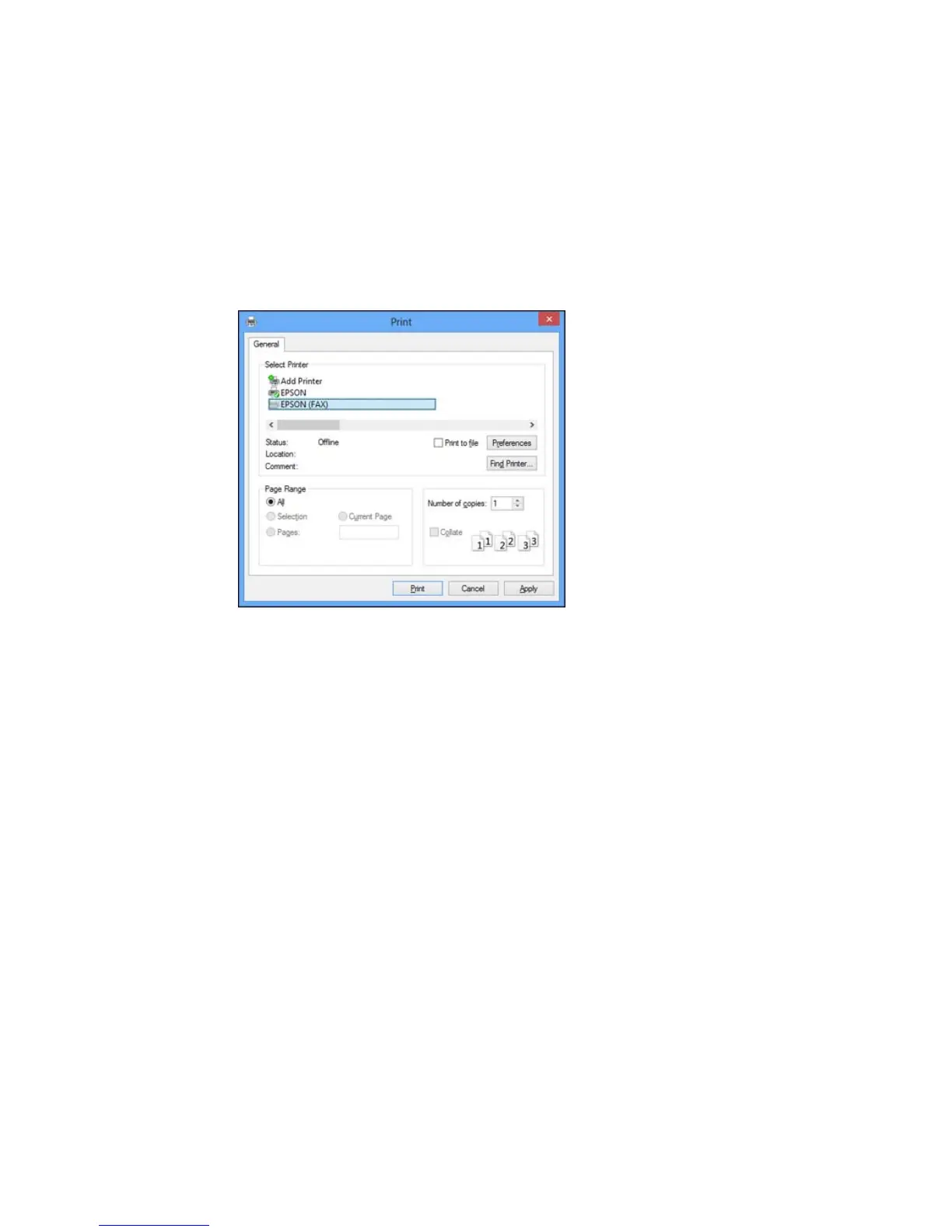 2. Select your product with the FAX option as the printer.
