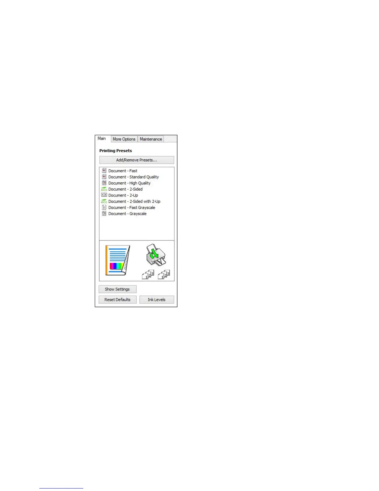 2. Place your cursor over one of the Printing Presets to view its list of settings.