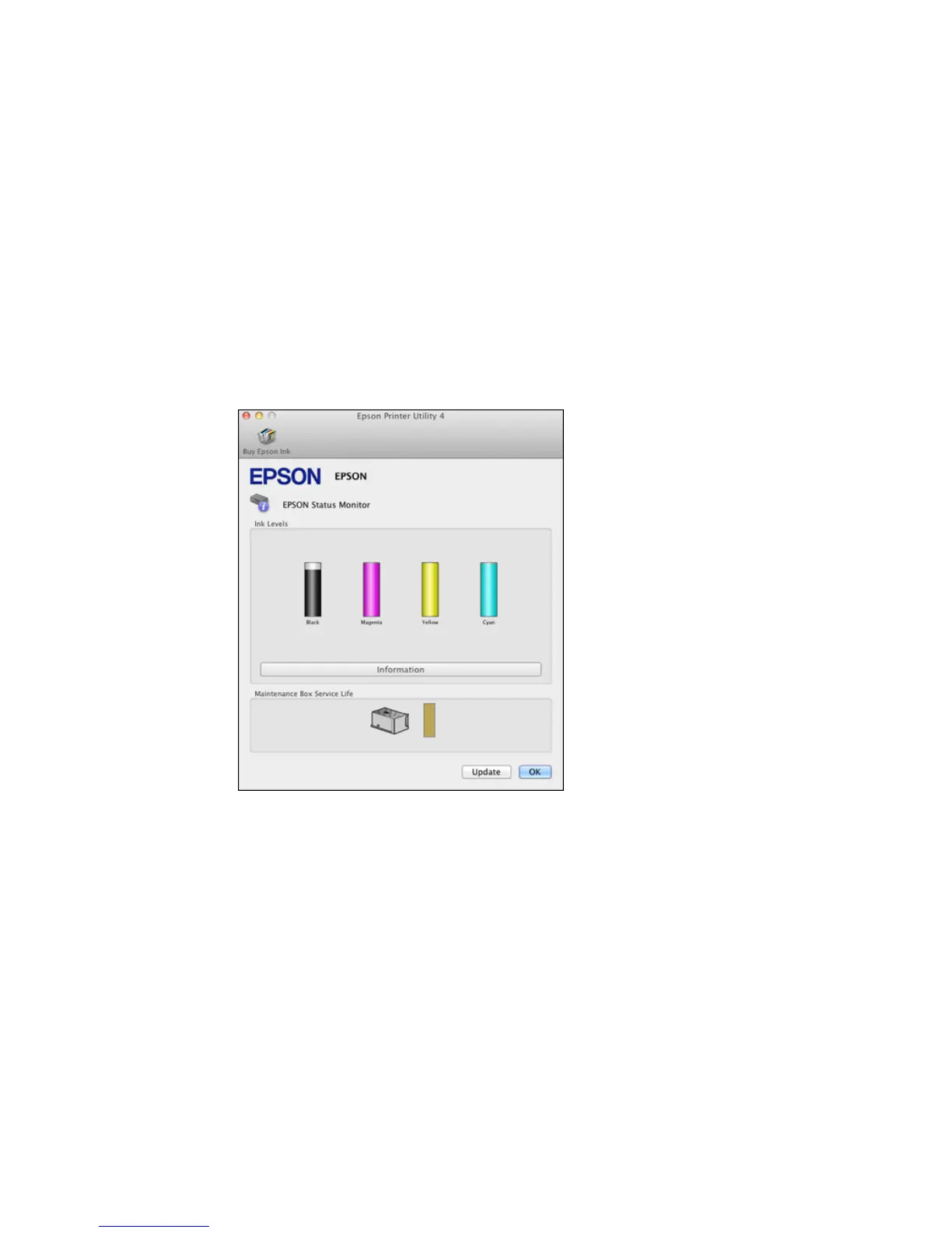 • You can update the ink cartridge and maintenance box status by clicking Update.